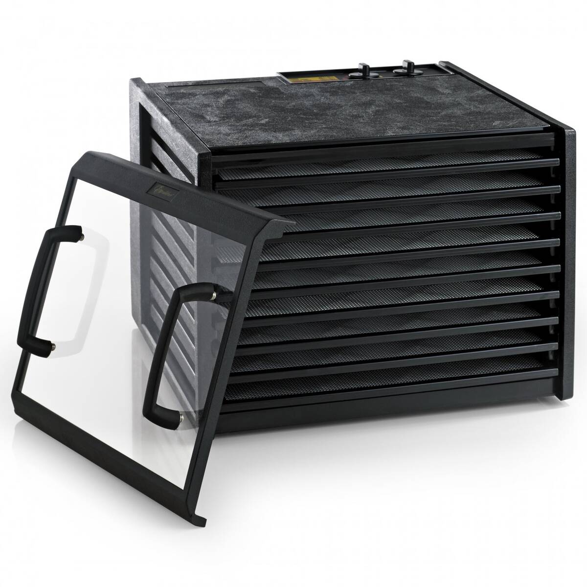 - Зручні дверцята економлять робочий простір і дозволяють легко обслуговувати дегідратор.