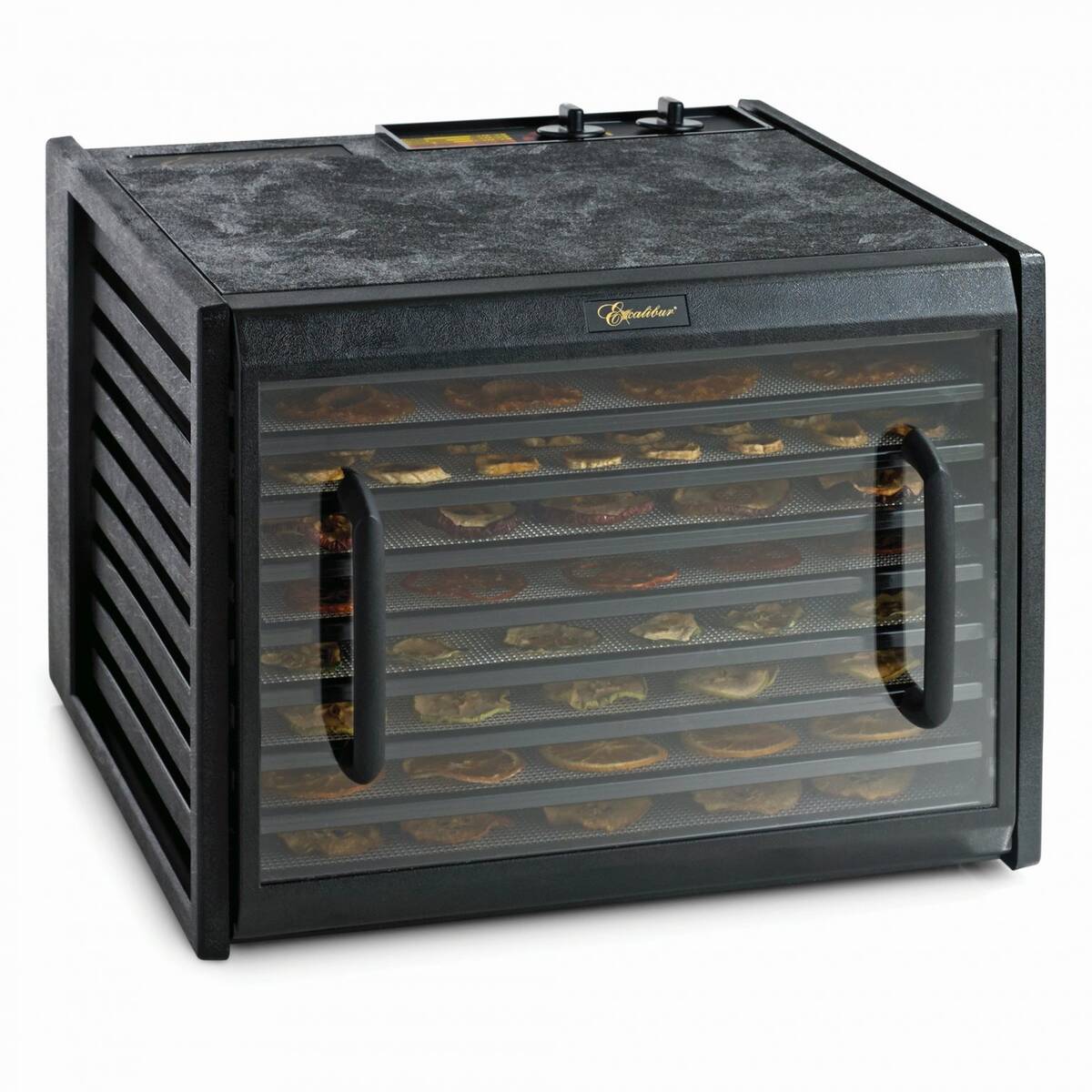 Ця модель більшої місткості ідеально підходить для людей з великими садами або декількома фруктовими деревами. Дегідратор Excalibur 4926TB містить дев'ять великих сушильних лотків загальною площею 1,39 м2. Цей дегідратор оснащений 13-сантиметровим вентилятором, двигуном потужністю 600 Вт, регульованим термостатом і прозорими дверцятами для легкого контролю за продуктом. Корпус, дверцята і каркас дегідратора виготовлені з дуже міцного BPA-free пластику, який не ламається навіть під колесами фургона або ударом молотка. Усі компоненти виробляються та збираються в Сполучених Штатах, на відміну від деяких дешевих китайських копій, які продаються під різними брендами.